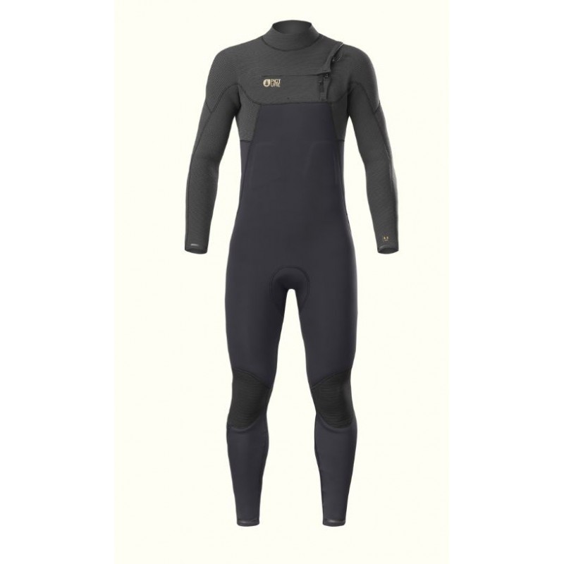 Paddling has never been so good! Featuring our brand new Flex Skin technology, the Equation 4/3 Flex Skin Front Zip is an ultra-stretch, heavy-duty wetsuit for chilly water! Equation wetsuits are made with the latest Eicoprene technology, a non-petroleum based synthetic foam derived from a mix of oyster shell powder, limestone and recycled tires. To laminate the recycled polyester lining we use Aqua-A™, a solvent-free water-based glue with no harmful chemicals. The Equation 4/3 Front Zip version is designed for 52°F-63°F water. The WPF lining (Warmth Performance), our warmest lining available, makes this wetsuit stand out. The 3D-Knit construction and the WPF lining provide warmth by trapping air between each loop. The denser fabric offers extra comfort. Its front zip and watertight seals minimize water entry. Comfort zones protect your ribs when paddling. It also features glued, blind-stitched, fully-taped seams (GBS), which provide protection, stretch, and water resistance.